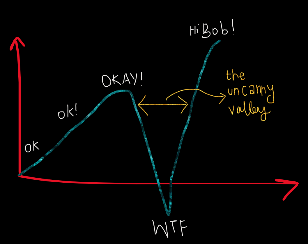 Let's circle back to how this entry started. Do you know what the uncanny valley is? According to Wikipedia, "It is the region of negative emotional response towards robots that seem almost 'human' ". In this case, you know that none of the posts are written by humans (i.e., AI generated) but you can't prove it.